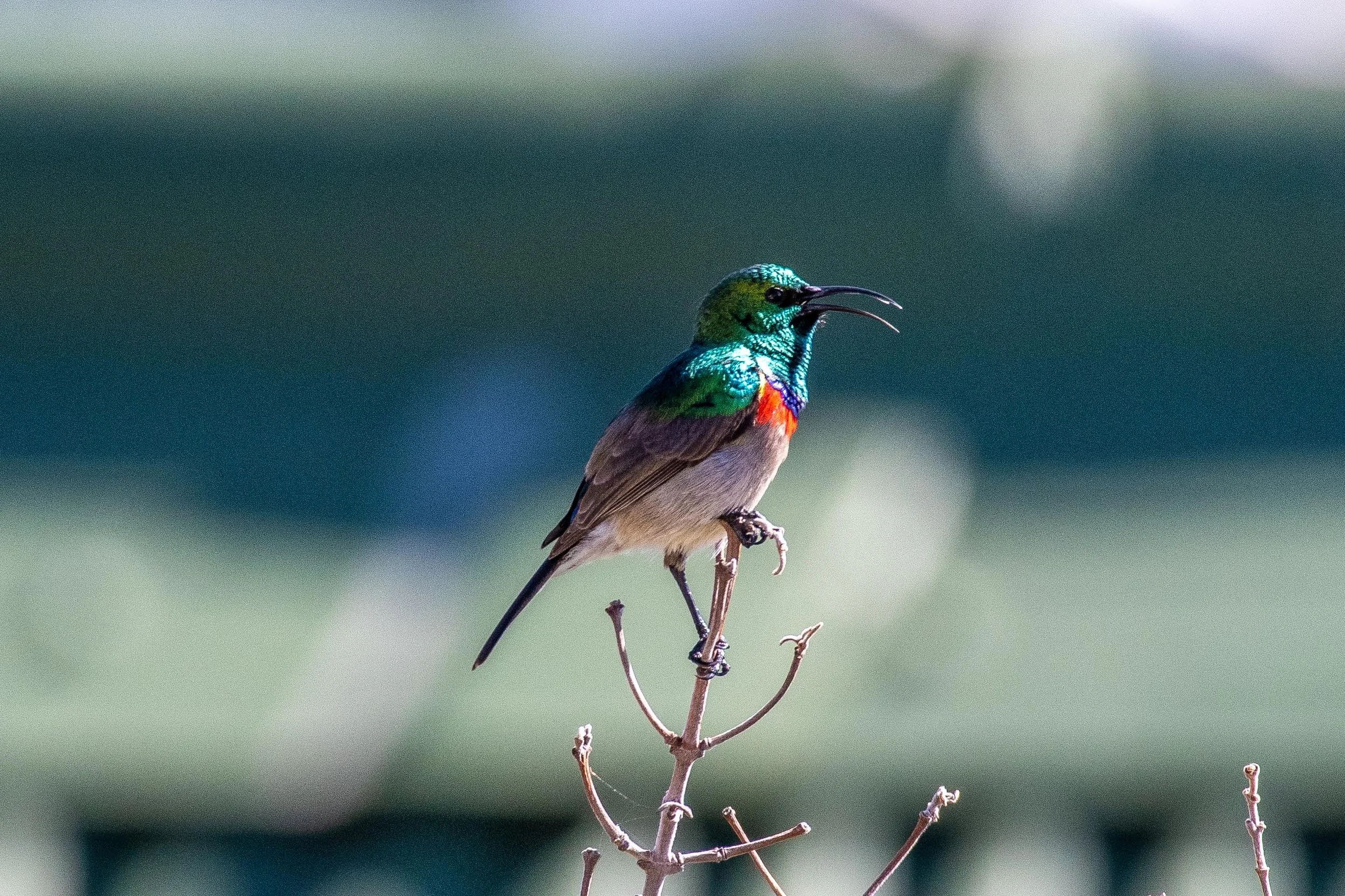 The rest of the morning was consumed with preparations for the ceremony. A frenzied coalition set about moving tables and chairs and crockery and cutlery, flowers, furniture, food, and photos. During the chaos of it all, I watched as a Southern double-collared sunbird would occasionally swing through and land on the same spots every 15-20 minutes. As the gentlemen wound down their end of the prep, I had a few minutes to post up on the terrace above to watch and wait for my feathered friend to return. Birding requires patience and it requires some knowledge and intel on when and how and where your quarry is going to move. After about 20 minutes, my target returned to a good spot and I fired off a few shots before it disappeared again on its route.