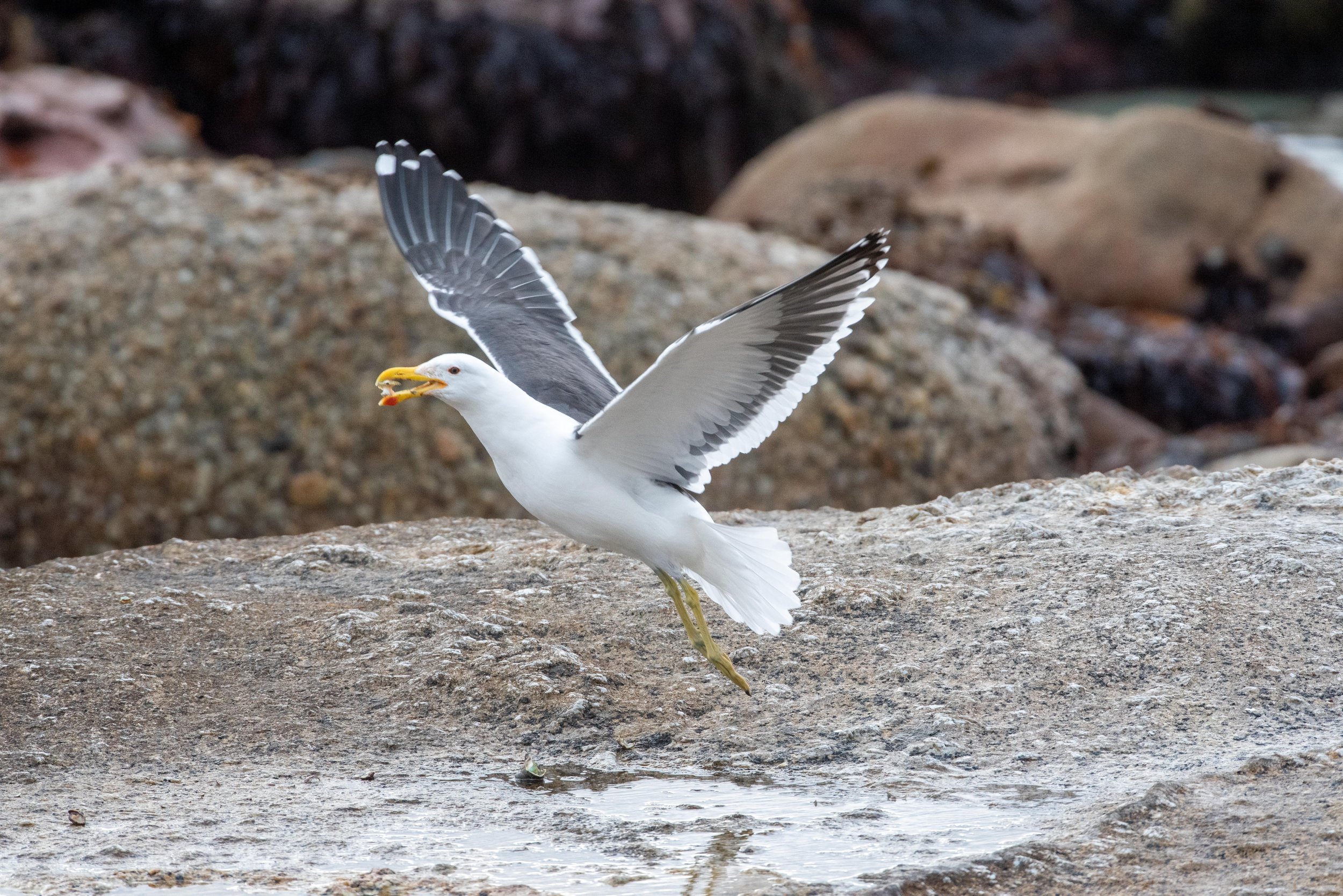 With that focus, I found it easier to sift through all the chaos and really focus on certain individuals. It forced me to watch the penguins, not just see them and fire off shots. I had to anticipate their movements, their personalities. Some of my shots were more challenging than others. Penguins defending space was completely up to them, and I had to watch closely to see which ones were being particularly territorial. Penguins have sexual dimorphism and females are slightly smaller than the males. At a distance it can be hard to distinguish between the sexes. Some penguins seemed to really have it out for particular individuals, whereas others got a pass. Perhaps the sex of the penguin passersby played a role in their animosity. The hardest thing to shoot for a pair of penguins in the colony is the fact that there are other penguins in the shot that wander in and out of focus. Foreground and background distractions really take away from a photo and finding a pair away from others was almost impossible. Swimming groups were equally difficult. They were a good 200 feet away, in moving surf, with lots of things for the autofocus to find instead of the penguins. This is where I had wished I had rented a D6 and an 800mm lens. The last element that made this shoot particularly difficult was the weather. Clouds are great for keeping harsh light off of everything, but it also means a slower shutter speed and a higher ISO than I would normally prefer when using my long lens. These things tend to make the pictures a little blurry and a little grainy. Without a tripod, the wind made the long lens move around quite a bit. I rested it on railings where I could to stabilize it.