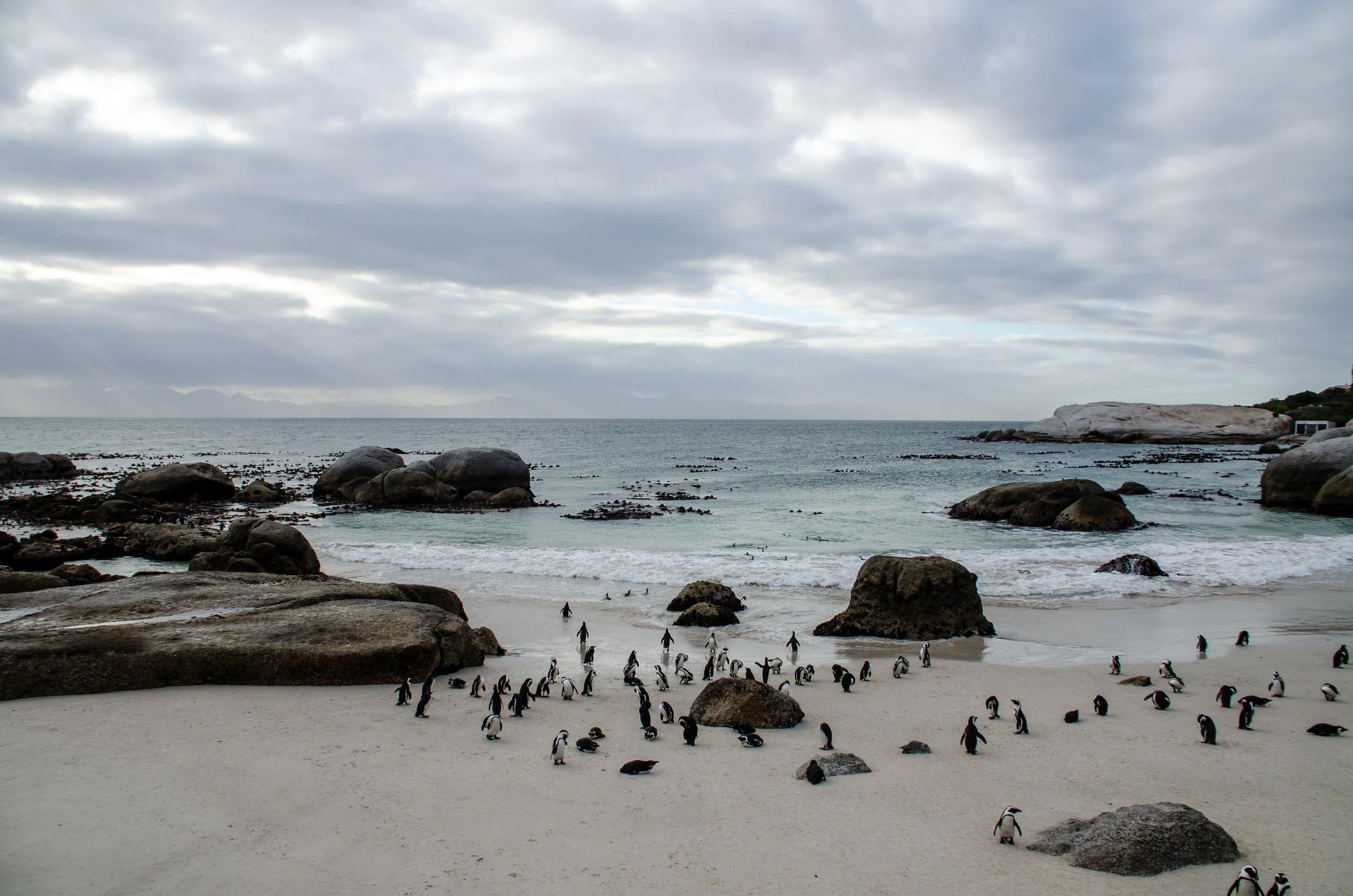 That’s right. On Boulders Beach proper, you can walk down along the sandy beach and have yourself a swim if you fancy one. You may find yourself amongst several penguins if you do. The wind had not abated from the night before and clouds crossed over the bay with little sunlight and occasional light rain. It was chilly, only about 55F. In that sort of weather we three decided this would be a perfect time to go for a swim. We chose to visit the other areas first, purchase souvenirs, and then swim so as not to be cold and frigid the entire time we were there.