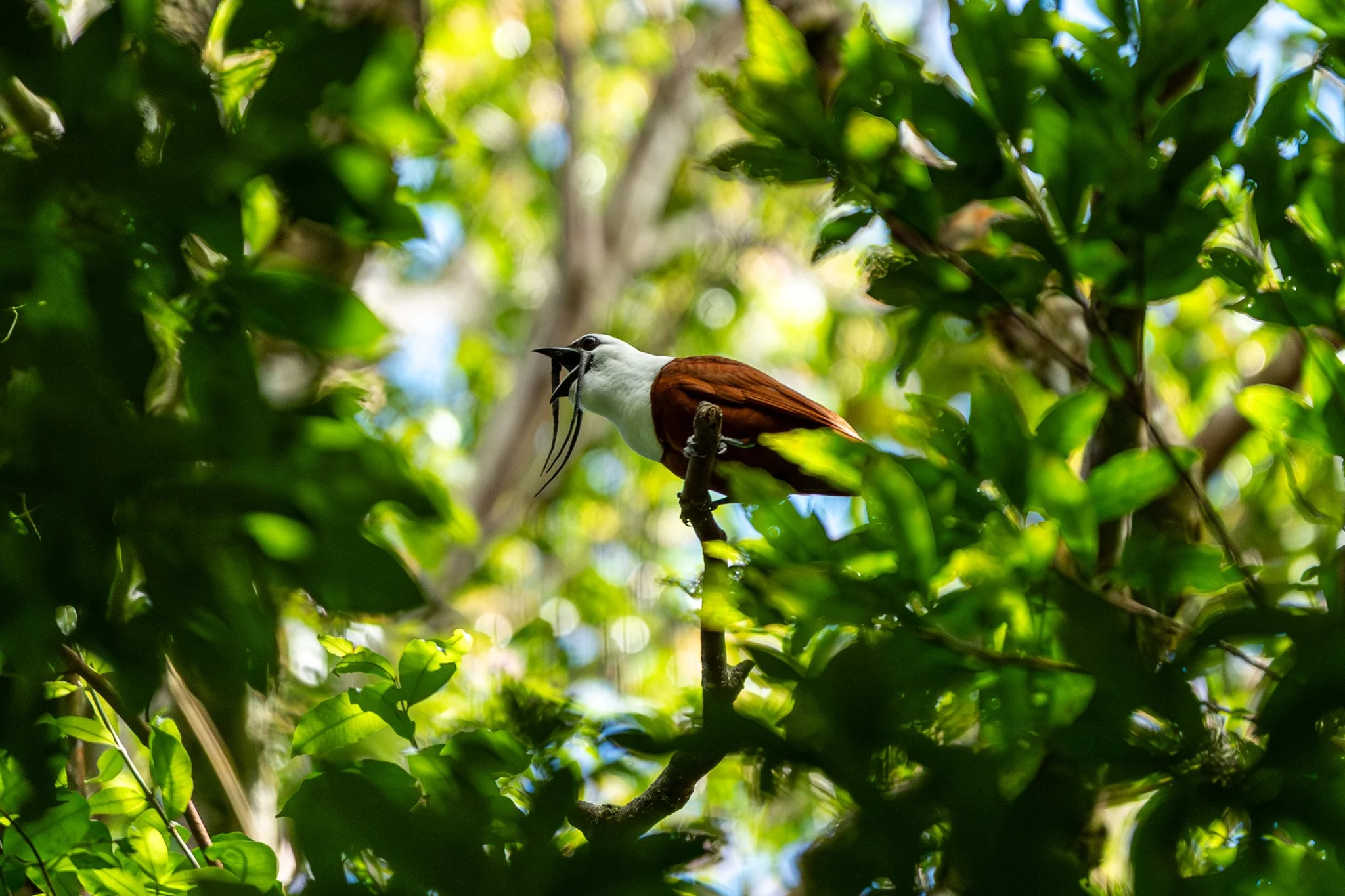 This bird is considered one of the loudest if not THE loudest species of bird in the world. We watched and listened for a while in awe. Jorge explained to us that they are endangered across their range in central america, and they have been known to pick up accents or different calls as they migrate through different regions and countries. This one is apparently a regular visitor to the reserve. They get their name from the three wattles or extra skin that hang from its face. They’re a secretive bird more often heard than seen so this was a real treat. We saw tons of other birds including a tinamou another uncommon species to be seen. Jorge said “you’re one lucky guy!” After a half day in Curi Cancha we parted ways with Jorge with a plan to reconnect for a night hike. We grabbed lunch at a small cafe in a mall not far from our hotel. Back at the hotel two motmots appeared outside the room and we took some time to watch them. After a short nap I repacked the gear for the night hike.