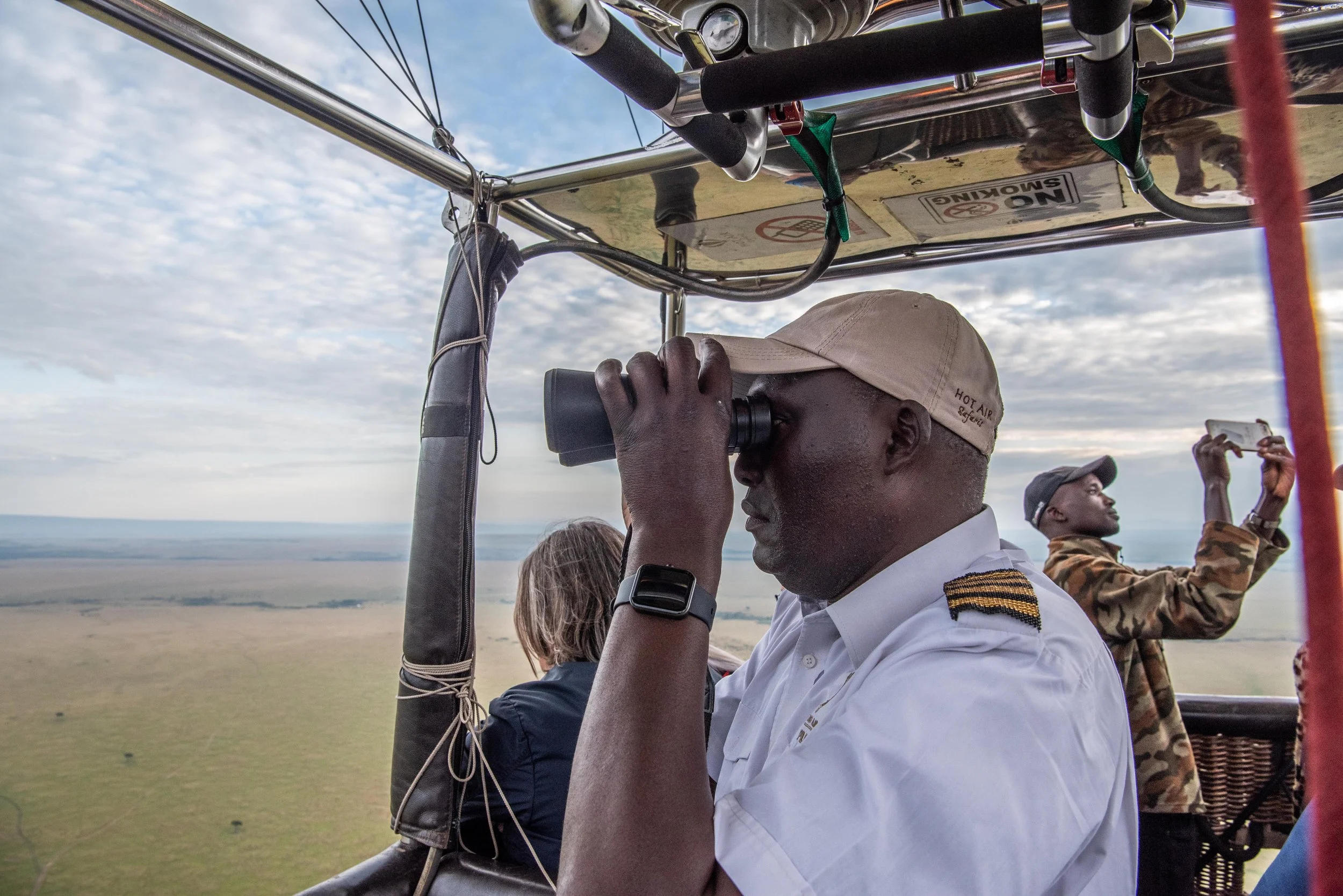 David is a Kenyan and one of the few pilots to actually hail from his motherland. Most of the other pilots are from the US, UK, India, or South Africa. His whole job is to show up in the morning, get on a prepped balloon, and pilot excited passengers across the Maasai Mara at dawn, and he’s been doing it successfully for 16 years. Pilot training takes place in the UK and in Italy.