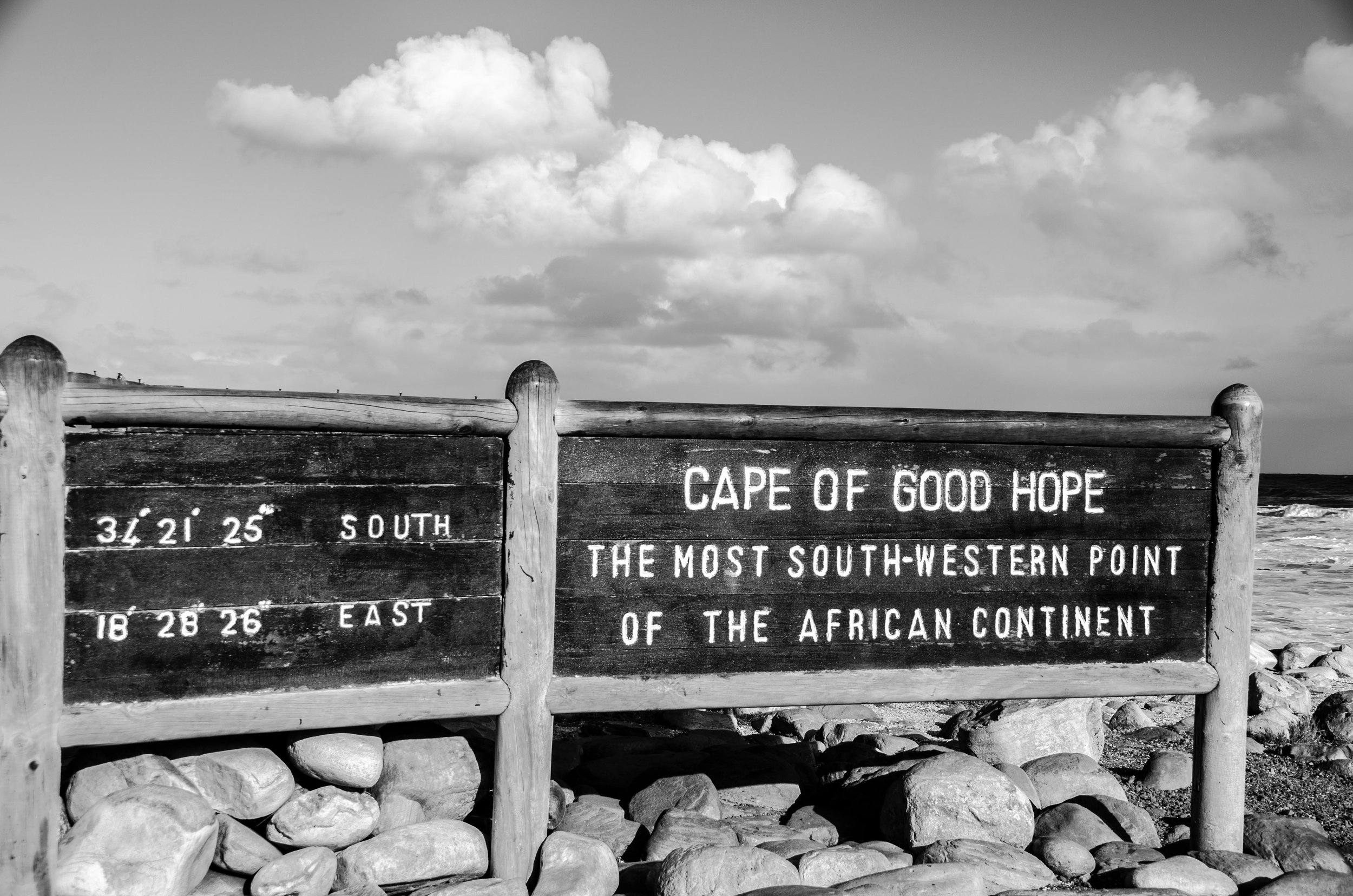 At the end of the road was the Cape of Good Hope. The roar of massively crashing waves breaking against the cliffs filled our ears. It was low tide, and dark green kelp scattered the large rubbly boulders that made up the beach. Out in the breakers, a large rock was home to a group of seals. Enormous sprays washed over them continuously.